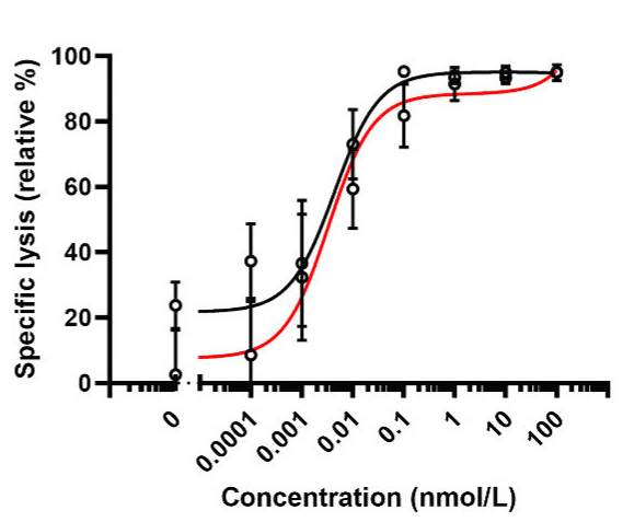 Specific tumor cell lysis can be measured by flow cytometry.